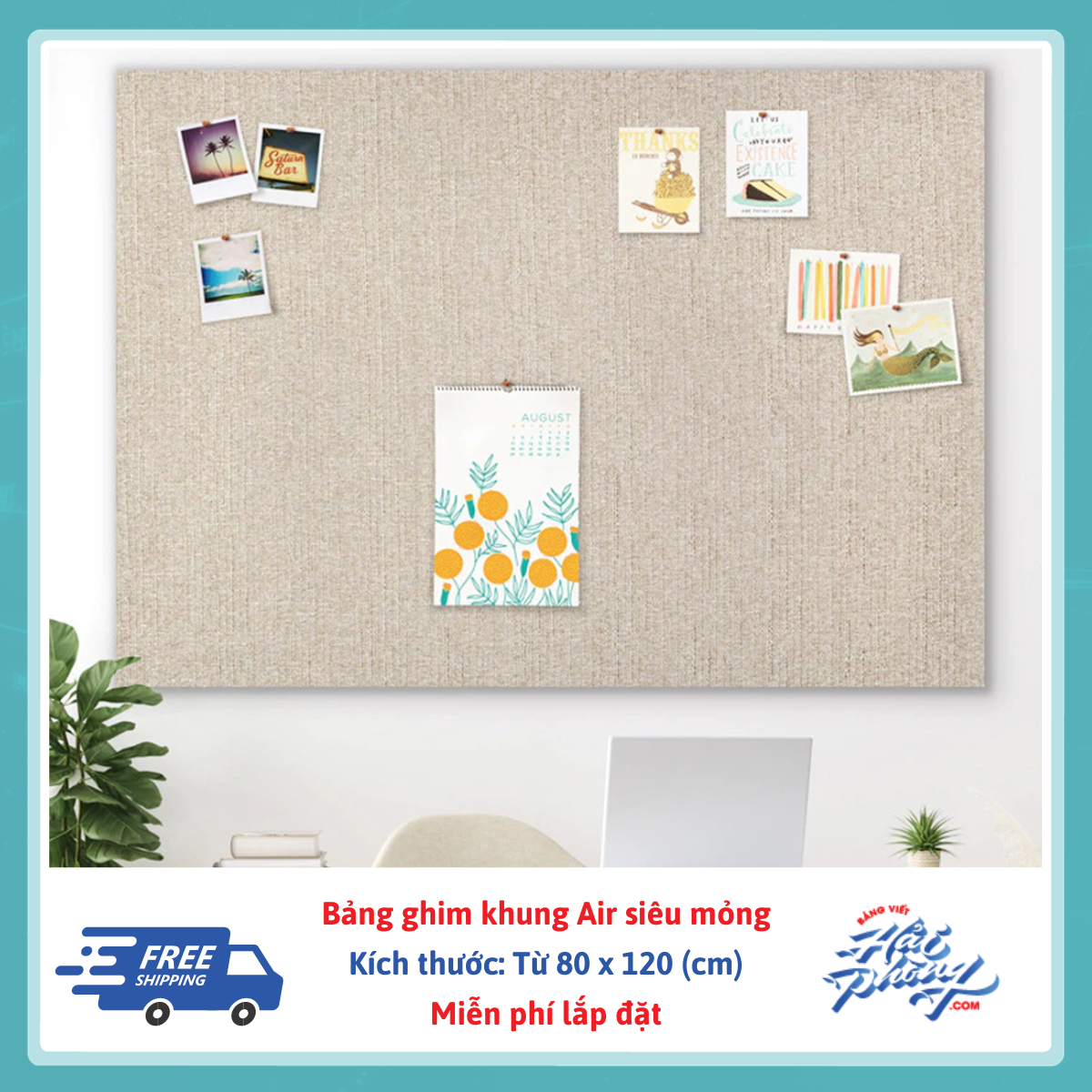 • KHUNG SIÊU MỎNG: với bề mặt vải mịn và thiết kế khung viền siêu mỏng, đây là thiết kế hiện đại và phù hợp cho mọi văn phòng, nhà, hay trường học với đa công năng: bảng thông báo, bảng ghi nhớ, bảng trang trí kết hợp tiêu âm