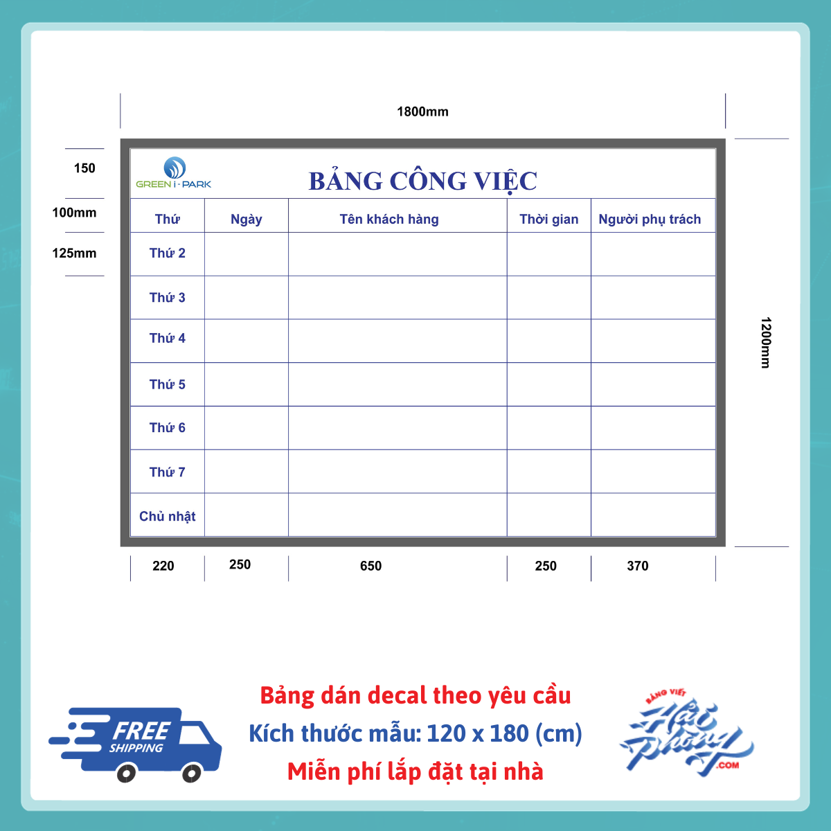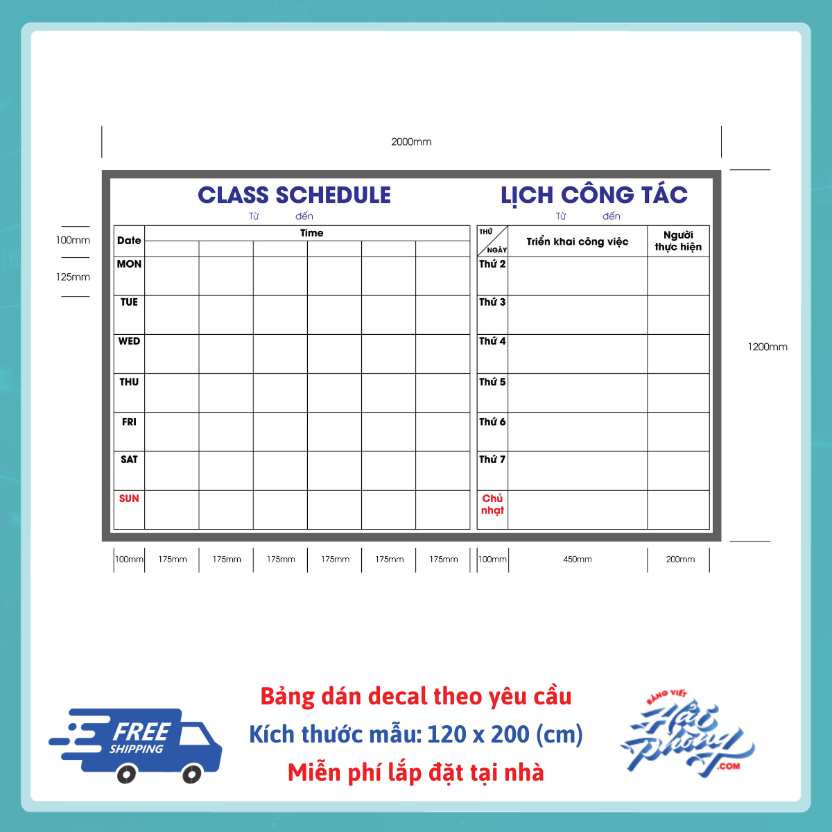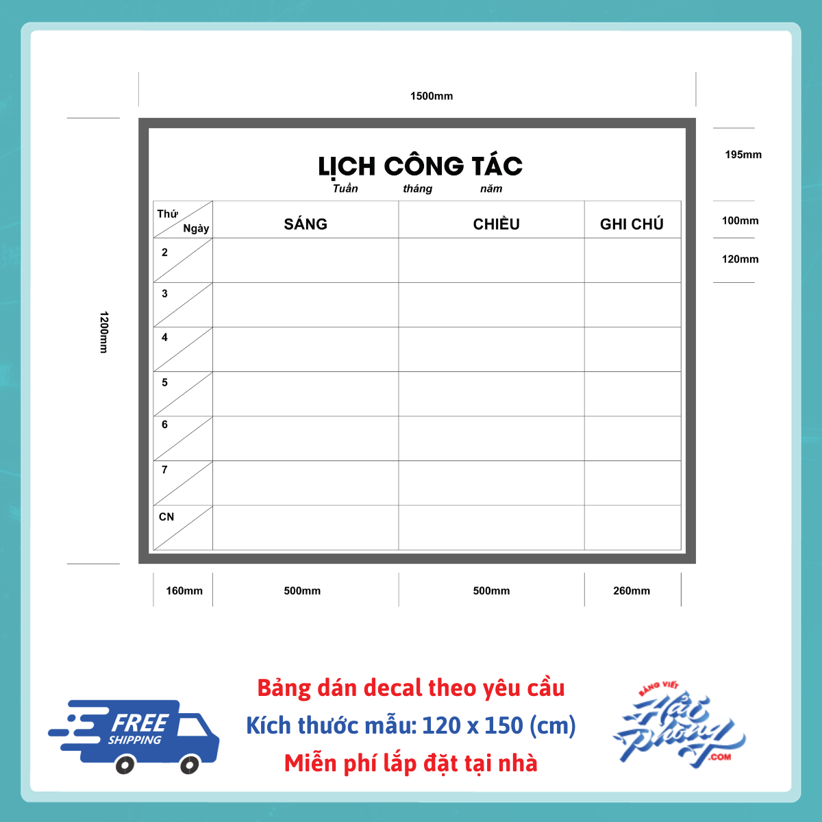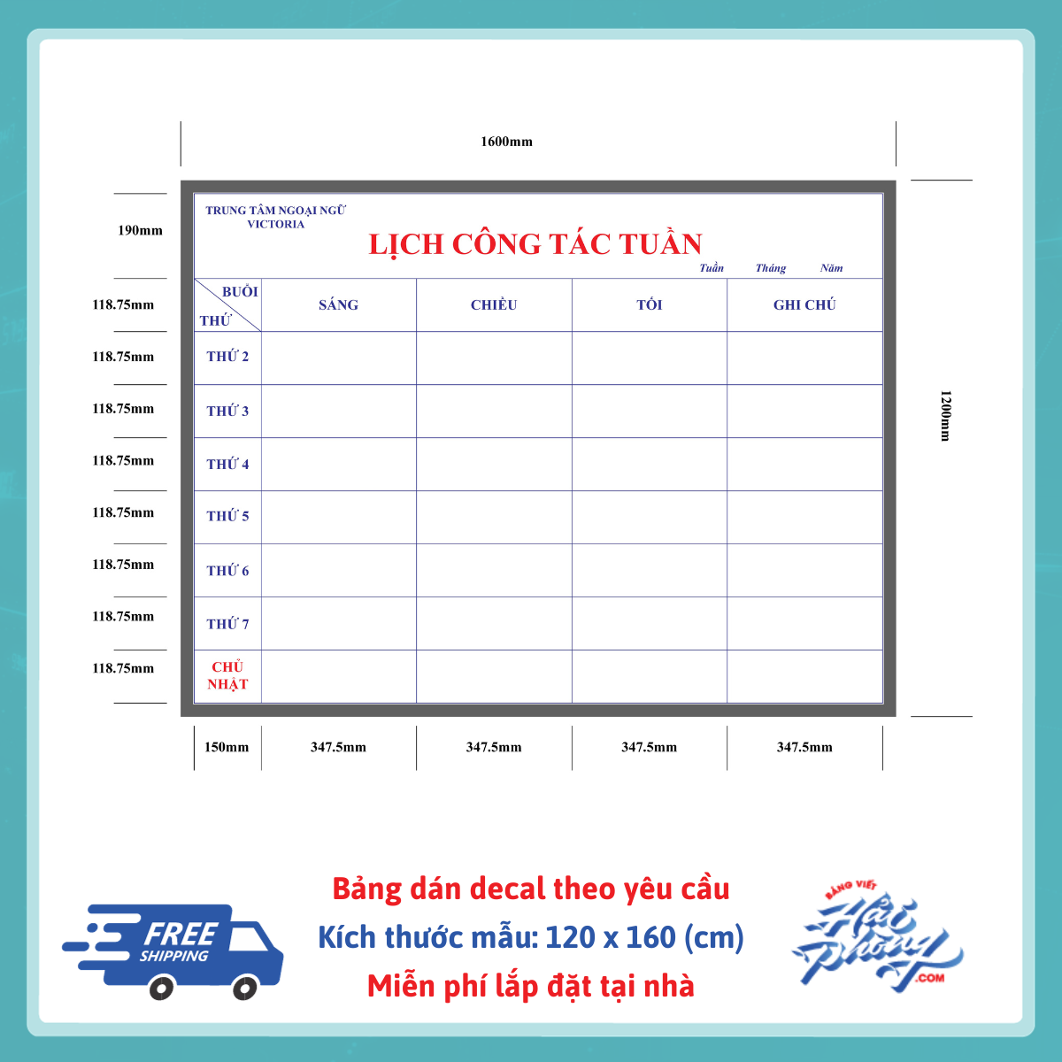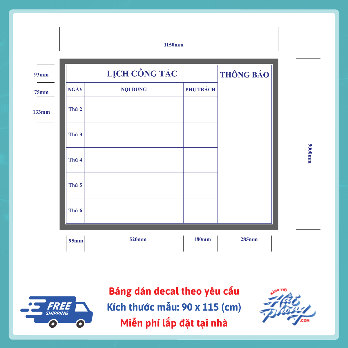 Bảng lịch công tác dán decal