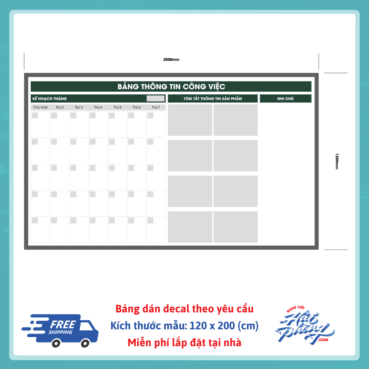 Bảng lịch làm việc tháng dán decal