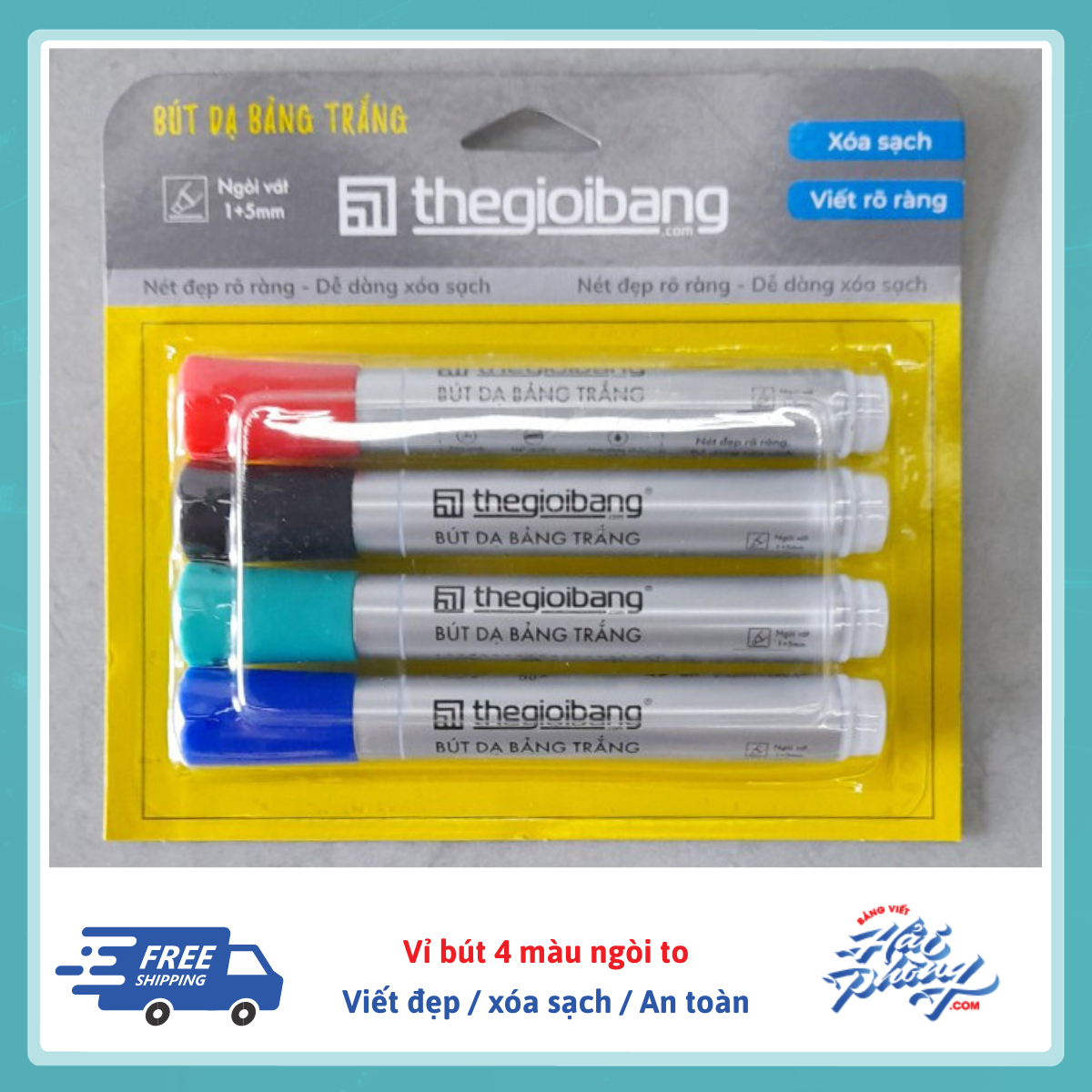 Với 4 màu thông dụng gồm: xanh dương, xanh lá, đỏ, đen dùng để viết bảng trắng sẽ đáp ứng đầy đủ nhu cầu viết, ghi chú, đánh dấu nội dung khi dạy học hay chia sẻ trên bảng trắng. Bút Thế Giới Bảng với ngòi vát chất lượng cao cùng mực nhập khẩu sẽ luôn giúp bảng dễ viết, dễ xóa sạch và đặc biệt an toàn với bề mặt bảng trắng.